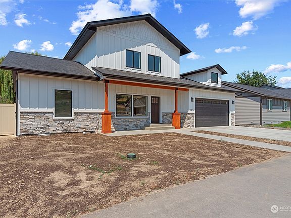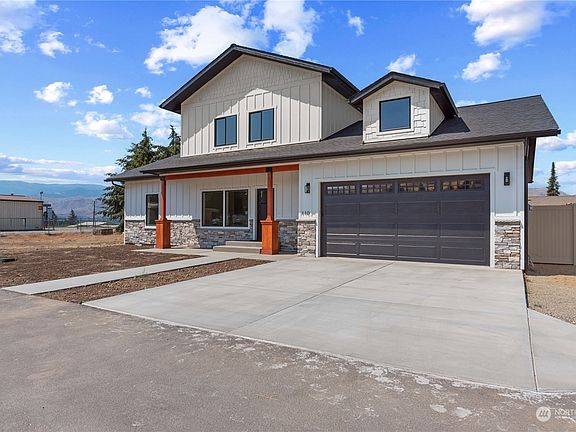 This charming new two-story with shake and stone finishes offers luxury and convenience. Brought to you by Trinity Builders. It features 9-foot ceilings, beam accents, luxury vinyl plank flooring and large picture windows. The kitchen includes a large island, quartz countertops, stainless steel appliances, a walk-in pantry and a convenient pot filler. The open and spacious great room provides lots of options for furniture placement. The primary suite offers a step-in tile shower, quartz counters, dual sinks, and a large walk-in closet. Upstairs, there are two bedrooms, a bathroom, and a bonus room. The back patio is perfect for entertaining, with a completely fenced backyard. The home is centrally located and offers serene mountain views.