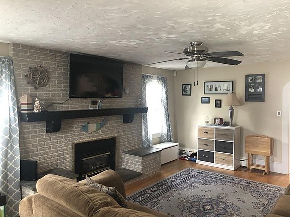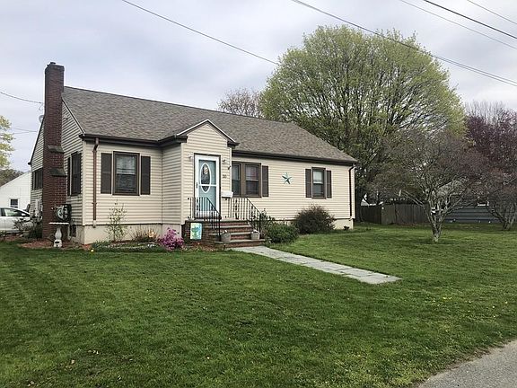 This 5 bedroom, 1.5 bath Cape is located in an established neighborhood on a 1/3 acre corner lot. The exterior of the home has low maintenance vinyl siding, a new roof and solar panels. The first floor features a large living room with a gas fireplace, a kitchen with a dining area, a tiled bathroom, 3 bedrooms and original hardwood flooring. The second floor consists of 2 spacious bedrooms and a half bathroom. The basement has plenty of open space for a work shop, laundry and storage. All appliances, including washer and dryer, to pass with the sale. This location is close to area amenities and convenient highway access to Rt 140 or I195.