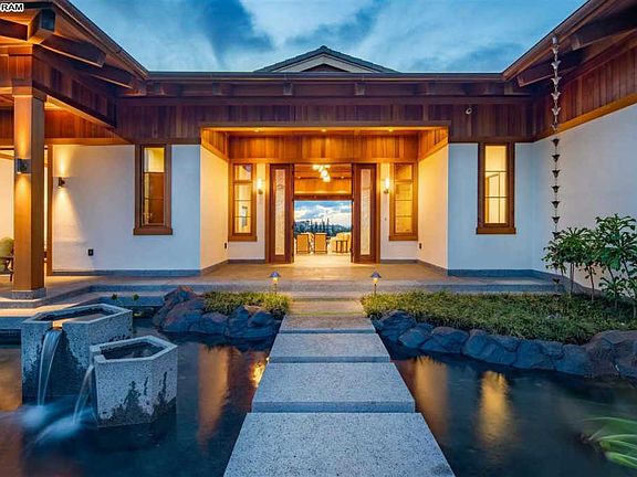 Mahana Estates, Kapalua's new luxury development of 51 estate lots set amongst the background of the azure Pacific Ocean and the grand West Maui Mountains, and also bordering Kapalua's famed Plantation Course, home of the PGA-Tour season-opening Tournament of Champions. Setting a new standard of Modern Hawaiian Luxury, discriminating quality and attention to detail distinguishes this home as Kapalua's finest. The marriage of exotic woods with extensive use of vertical-grain clear Cedar from Canada, White Oak floors and Teak cabinetry with the flamed & brushed black basalt tile, leathered and honed black granite, lava tile and tiki torches brings modern Hawaiian elegance to this spacious retreat.