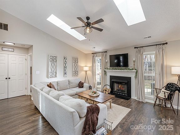 Back on the market—through no fault of the home, which means a new opportunity awaits! MOTIVATED SELLER!! Charming one-level home with modern upgrades. This beautifully updated open floorplan w/ vaulted ceilings and split bedroom. It welcomes you with/ a neutral color palette and offers comfortable living with/ thoughtful touches throughout. Updates include 2022 interior paint, new flooring, kitchen update with new cabinets, new solid surface countertops, new SS appliances, Pantry, coffee bar, and breakfast bar. Outdoor retreat space was also added in 2022, including a fenced backyard, enlarged patio, and firepit. Garage transformation, the space has been turned into a versatile living space with a workshop and convenient French door entry. 2024 HVAC. This space is not permitted and can't be counted as HL. Move-in ready and designed for modern living, this home is a must-see. The neighborhood is great for outdoor enjoyment. The home didn't have any storm damage or flooding from Helene.