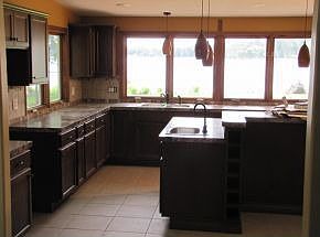 WOW! Unique, Private, Custom Property. Fabulous views from the walls of NEW windows. Lake-level lot on a beautiful corner of Fish Lake. NEWLY sided home boasts HUGE NEW Kitchen with awesome island, ceramic tile floor & backsplash. 2 lakefront decks for all those cookouts! Master bedroom opens onto private patio/master bath with custom glass tiled vanity! NEW Carpet, NEW insulation, NEW drywall & paint throughout!! Beautiful fireplace in spacious living room. All landscaped on large lot with a stream & pier. Agent owned.