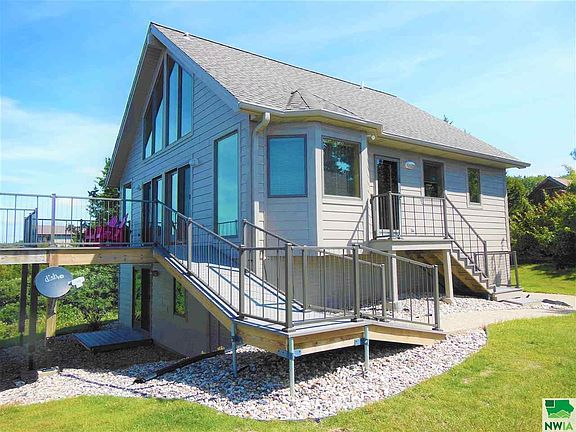 Beautiful Hideaway Acres home with a GORGEOUS VIEW of Lewis & Clark Lake! Sits on a .99 acre wooded lot for privacy. This property comes with the option for a BOAT SLIP!! If new owner chooses to purchase the boat slip from the Association for $8500, seller will include the boat lift and new canopy with an acceptable offer. This home can be accessed year round with hard road surfaces. Hideaway Acres has an HOA fee that includes the water and garbage. Road maintenance, public beach and boat ramp are some of the extra perks! UPDATES include new composite deck 2018. All new windows (except front door and garage door) in 2017. Newer cement board siding. Newer Trane variable speed heat pump with electric backup, whole house humidifier. With an over sized one stall attached garage and a detached 2 stall garage you'll have plenty of storage for your toys! Enjoy watching the MAGNIFICENT SUNSETS every evening! This home is the perfect HIDEAWAY! Schedule your private tour and see for yourself!!