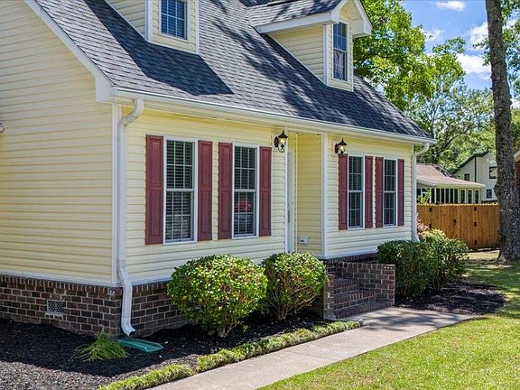 Welcome to your dream home in Hunters Woods of Crowfield Plantation! This charming Cape Cod home is perfectly located on a quiet CUL-DE-SAC with unparalleled SPACE and PRIVACY. This inviting floor plan greets you with an abundance of NATURAL LIGHTING accentuating the stunning HEART PINE FLOORING running throughout the heart of the home. The cozy family room, complete with a river stone designed wood-burning fireplace, is perfect for gatherings. Enjoy formal meals in the separate DINING room, while the charming EAT-IN KITCHEN, adorned with white cabinetry, offers bar seating, and a bay window in the breakfast area, creating a delightful space for more casual dining. With 4 BEDROOMS and 2.5 BATHS, the DOWNSTAIRS primary bedroom is convenient and LUXURIOUS offering MULTIPLE CLOSETS,separate SITTING room, and an ensuite bathroom featuring a DOUBLE vanity, SEPARATE shower, and a JETTED tub. The FROG/BONUS ROOM provides endless possibilities, whether you envision a home OFFICE, THEATER room, 5TH bedroom, or in-home GYM. Discover the hidden gem in the dedicated STORAGE ROOM providing ample space for storing holiday decorations to off-season clothing, this versatile space offers a solution to all your storage dilemmas. Outside, you'll find one of the LARGEST LOTS in Hunters Woods, offering ample space for outdoor activities and gardening. Entertain guests on the OVERSIZED DECK, soak up the sunshine, and host barbecues with ease. With an EXTENDED DRIVEWAY and two FULL-SIZED BAYS in the garage, there's plenty of parking for guests. This PREMIER LOT is complete with a backyard gate offering direct access to the neighborhood community park, pool, and walking trails. Additionally, you'll enjoy the convenience of being within walking distance to Wannamaker's North Trail, where over 15 miles of natural and man-made trails await mountain cyclists, runners, walkers, and hikers. Recent updates include a NEW ROOF installed May 2024, freshly painted ceilings and walls, new light fixtures, and new carpeting in the upstairs for added comfort and style. This meticulously maintained home is ready for you to move right in and start making memories. Don't miss your chance to make this stunning home your own - schedule a showing today and experience everything the coveted neighborhood of Hunters Woods has to offer.