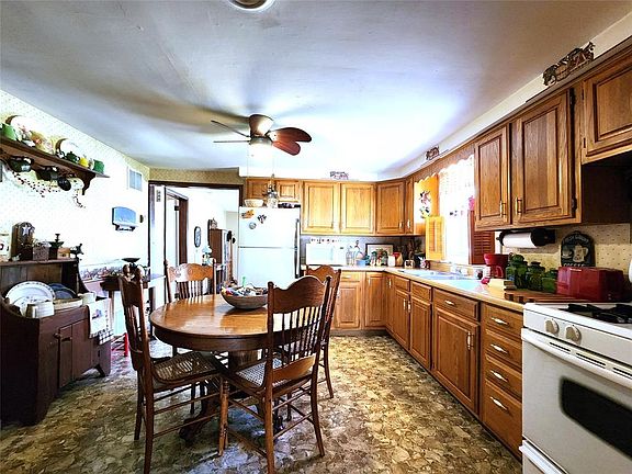 Walk inside this 2 bedroom, 2 bath ranch with white picket fence on huge in-town lot and immediately feel AT HOME!! You'll love the spacious eat-in kitchen with tons of cabinetry and all appliances, formal living room for entertaining, large family room with cozy gas stove, closet & full bath (could be master suite), bonus room, vinyl windows, front porch and HUGE covered side porch.