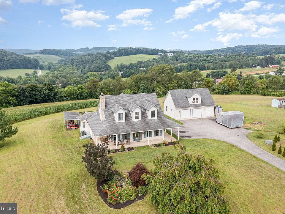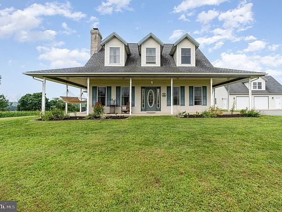 Scenic 7  Acre Retreat with Wraparound Porch, Dream Garage & Industrial Farmhouse-Inspired Basement  Welcome to your own private haven on just over 7 acres, where panoramic views, peaceful surroundings, and thoughtful features come together in perfect harmony. With 3 bedrooms, 2 full baths, and 2 half baths, this home offers comfort, versatility, and plenty of space to live your best life.  From the moment you arrive, the charm is undeniable. A nearly full wraparound porch invites you to sit back, relax, and take in the breathtaking vistas that change beautifully with the seasons.  Inside, you’ll find a warm and inviting layout designed for both everyday living and entertaining. The lower level is a true standout — a beautiful bar area and spacious rec room accented by corrugated steel wainscoting for a striking industrial farmhouse feel. Whether you’re hosting friends, enjoying game night, or watching the big game, this space is both stylish and functional. A bonus room offers endless possibilities: workout space, hobby room, or even an extra bedroom when needed.  Outside, the detached garage is a dream come true for hobbyists and tinkerers, equipped with 220 volts and plenty of outlets for all your projects. And lots of parking for gatherings.  About 3.5 acres are currently " leased" to a local farmer under an amicable agreement, giving you the beauty of working farmland without the maintenance, if you choose to continue.  This is more than a home — it’s a lifestyle. Whether you envision evenings on the porch soaking up the views, weekends hosting friends in the bar and rec room, or simply enjoying the peace and privacy of country living, this property delivers.  Don’t miss this rare opportunity — schedule your private showing today and experience it for yourself!