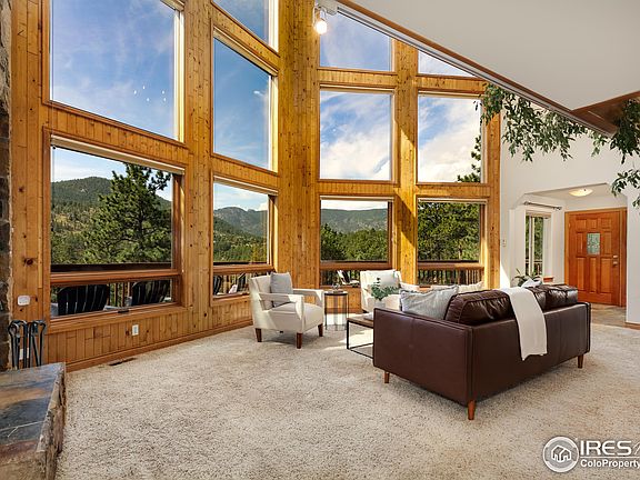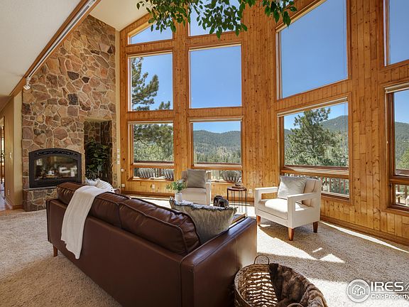 Discover mountain paradise in Pinewood Springs! This exquisite 3,800+ square foot home on over an acre offers serene living with a touch of adventure. Situated near Little Thompson River and a community swimming hole, the location is a nature lover's dream. Step into the breathtaking living room with cathedral ceilings, drenching the space in natural light and showcasing incredible south-facing views. The expansive deck is perfect for entertaining against this stunning backdrop. The main level features a primary bedroom with a 5-piece bath, a spacious kitchen, dining room, laundry room, and access to the deck. The walkout basement has a great room, ideal for a pool table or TV area, leading to a large covered patio. Additional bedrooms provide comfort, while the loft offers a cozy space for reading or hobbies. The property has mature evergreens, a secluded area for your hot tub, and proximity to hiking trails. Surrounded by Roosevelt National Forest, outdoor activities like biking, hiking, and wildlife viewing abound. Only 10 minutes from Lyons, 30 minutes from Boulder/Longmont, and 20 minutes from Rocky Mountain National Park and Estes Park, the location seamlessly combines mountain seclusion with convenient access to restaurants, shops, schools and other conveniences. Your mountain lifestyle awaits - schedule a showing today!