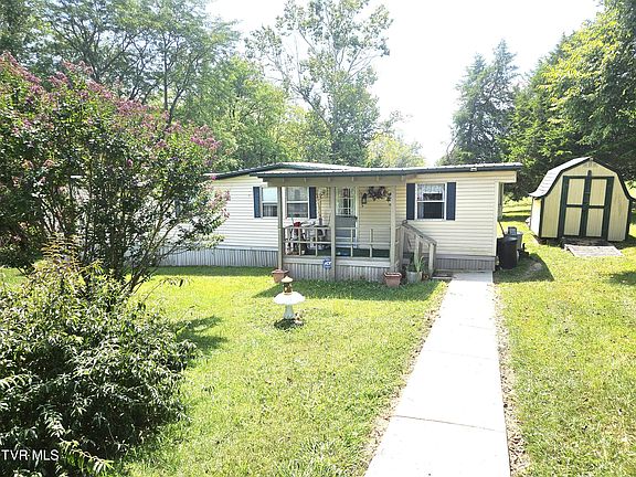 Two bedroom, one bath mobile home conveniently located between Rogersville and Surgoinsville. Situated on a nearly half acre level lot. One car carport. Two storage sheds. Covered front porch. Great location to live in or as a rental investment.
