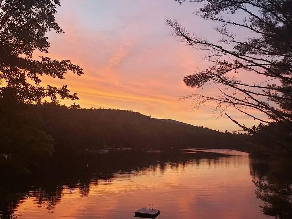Adorable cottage on beautiful Moose Pond. Private sandy beach, dock and swim raft. The beach gets both morning sun and evening sunsets. Enjoy happy hour with that special someone sitting at the end of the dock watching the sunset. At night enjoy starlite campfires overlooking the lake and mountains.