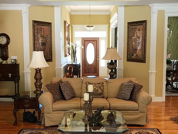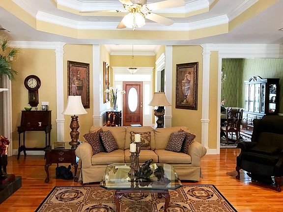 REDUCED $20,000 TO allow for Appliances and Flooring. There are to many features to mention but here goes. Very well maintained. Exterior has new fascia trim and has been completely painted in Dec. 17. It has a sprinkler system in entire yard including beds. The back yard has a gorgeous gunite pool and pool house with 1/2 bath for the swimmers and privacy fence. The interior offer's 10' ceiling in foyer and to your left is triple trey ceiling in dining room. There are custom columns on corners and this leads to large great room with fire place and built in book shelves holding electronics for surround sound radio, CD etc. which stays and triple trey ceilings. The great room moves into large sun room with window across entire room about 28 ft. All bed rooms are large and master joins master bath with separate shower, Jacuzzi tub, toilet closet and double sinks. Master closet leads off bath and is about 8x17' deep. More room than you can imagine. Two bedrooms are on this end of house and each has walk in closet with separate vanities and share tub and toilet. The 4th bed room is being used as office. You might as well pack your bag when you see this custom built home. Most of the furnishings are for sale. Seller is a real estate agent in Ga. Seller will look at all offers.