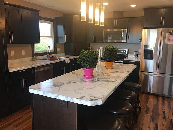 Stunning 4 bedroom, 2 bath home plus an office & or den. This home has it all as it features a beautiful kitchen with all new cabinetry, countertops, appliances & lighting. A double stall attached heated garage & a 28 x 30 heated garage in back! Updated baths, new carpet & paint throughout. Yard is beautifully landscaped with a 2 tier deck. A must see!