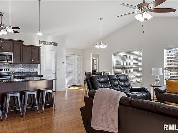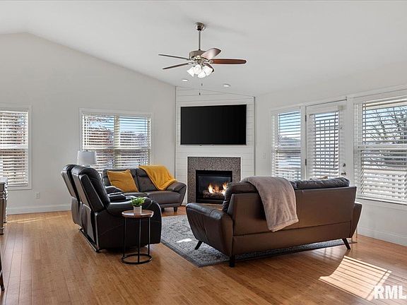 This is an immaculate & super spacious FIVE bedroom home with a finished walkout basement AND an incredible Chatham lot that overlooks Lake Springfield. You'll be mesmerized at first glance when you take in the striking appeal offered by fresh updates throughout the exterior. A delightful wrap around porch & master bedroom balcony are both visual focal points & practical perks of the layout. Inside you'll find warm hardwood floors stretching across most of the main floor with bright, freshly painted, neutral color schemes. You'll love a trendy shiplap accent wall & fireplace adjacent to the huge kitchen island & breakfast bar leaving you with a wide open concept for both formal dining & more relaxed entertaining. The main floor master suite is equipped with a full bathroom & walk in closet while the balcony's natural light & perfect view of the lake are like a cherry on top. Find a main floor laundry room, second full bathroom & 2 more bedrooms before you venture downstairs to the family, rec & additional bedrooms. Newer carpet & daylight windows are offered in the spacious family room with walkout patio access plus a separate rec room, bedrooms 4 & 5 (egress equipped) and even a den or office to enjoy are found alongside the 3rd full bathroom. Move in ready is an understatement for this fabulous Chatham home with negotiable furnishings.