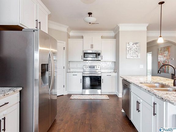 Move in ready open floor plan ranch home. Only 2 years old! This beautiful home features 3 beds plus office, 2 full bathrooms. Granite counters through out. Wood flooring in main areas. Rounded corners, WiFi ready smart phone garage door opener. Landscaped fully fenced backyard, stainless steel appliances, covered front/back porch. Beautiful community minutes away from shopping, hospitals, restaurants and downtown. Quick commute to Redstone Arsenal and Research Park.