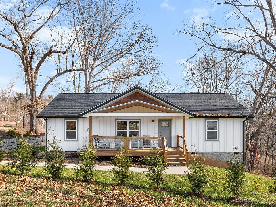 Discover the charm of this meticulously maintained home, just a 0.1-mile stroll from Main Street in Weaverville. Completed in 2020, this property feels like new and offers a perfect blend of modern comfort and cozy character. Relax on the large covered front porch or take in winter views from the back deck. The open floor plan is highlighted by a vaulted ceiling in the living room, and the custom mountain mural in the dining area adds a distinctive and unique focal point. All appliances, roof, and HVAC system are less than four years old. The crawl space is walk-in height on one end, providing ample storage options and enhancing the functionality of the home.