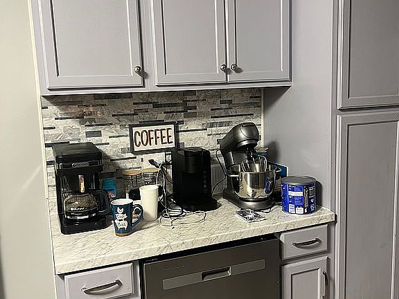 Cute home on a cul de sac with a covered porch and a garage with an attached shop.