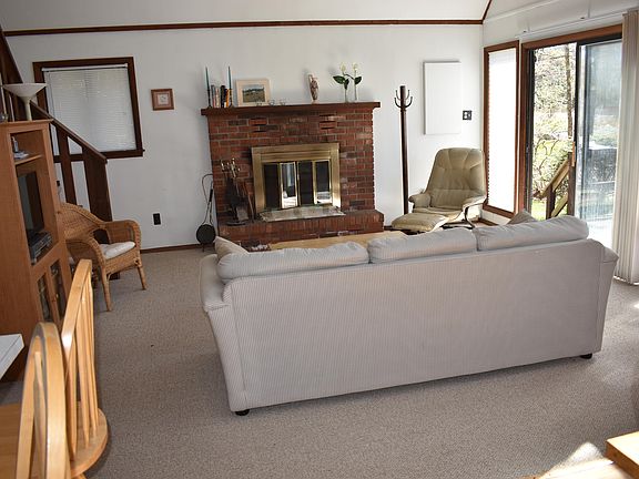 Cute & Affordable - Country Retreat Enjoy peaceful moments in this 3 bedroom 1 1/2 bath adorable country retreat featuring bright open floor plan. Kitchen / dining / living area with cathedral ceilings, lots of glass and handsome brick fireplace. Large private screened porch and wrap around deck. Quiet setting on a level parcel.