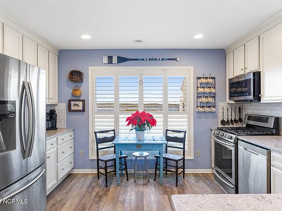 Your own island retreat awaits. This impeccably maintained home in the highly sought after Surf City is sure to wow you. Inside features a great open floor plan with a beautiful kitchen with quartz countertops, gas range, and floor to ceiling white cabinets. The living room and kitchen have stunning sound views. Down the hall is a full bath and 2 guest bedrooms as well as the master bedroom complete with an ensuite bathroom. As charming as the interior is, just wait until you see the decks, porches, and oasis like landscaping. Sip your morning coffee on the covered screened in porch off the living room and wind down with cocktails on the deck off the kitchen with painted skies at dusk. There is more, head below the house to enjoy your own putting green, build a fire, or lounge in many of the covered sitting areas. Downstairs also features a spacious storage room, ample parking, and an outdoor shower. This property is truly a gem that would make a wonderful primary or secondary home or an amazing rental property.