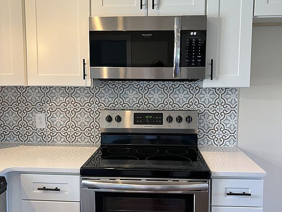 - Included: Dishwasher, Disposal, Microwave, Electric Oven, Electric Range