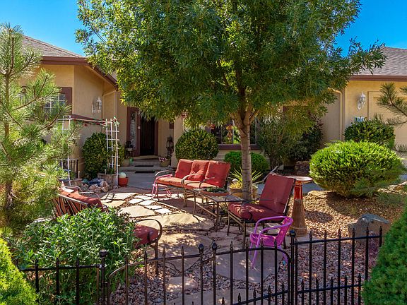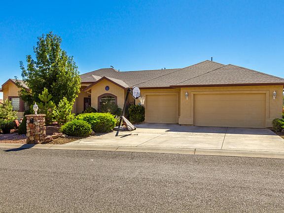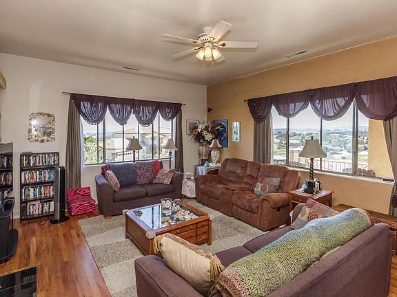 Perfect Family Home - Warm and Inviting! This Former model home has been lived in and loved by the original owners. Situated on a corner lot with 180 views of Granite Mountain, Granite Dells and the San Francisco Peaks. Upgrades include granite countertops, tankless water heater, dual zoned heating and air, 3 car garage with a level entry, electric range (plumbed for gas), formal dining room, tons of built ins, large custom inside storage area, beautiful landscape with a water feature. Huge finished walkout basement includes family room, bedroom, full bath and a future mother-in-law quarters that is pre plumbed for a kitchenette. All the benefits of an HOA without any of the dues! $2000 Carpet Allowance Included for Mother In Law Suite!