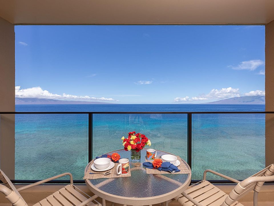 Penthouse studio at Mahana at Kaanapali with spectacular panoramic ocean views, year-round sunsets, and views of the neighbor islands of Lana'i and Moloka'i. Picture perfect spot to watch Maui's humpback whales in winter, and turtles and dolphins playing in the surf below. Rated a "Premium" in the on-site rental management program, this unit is tastefully furnished; finishes include granite countertops, wood cabinetry, stainless steel appliances, tiled shower. Amenities at the Mahana include an oceanfront swimming pool, poolside grilling facilities, shuffle board and tennis courts.