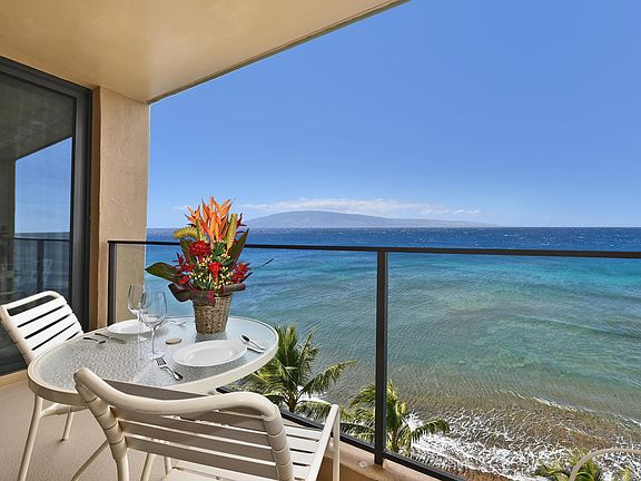 Your Maui Dream Come True! 12th Floor Penthouse Unit 1215 is a spacious, 1 bedroom 2 bath unit on the top of the Mahana. Located directly on the Beach just north of Black Rock at Kaanapali. Incredible views of ocean, beach, islands, and mountains from throughout the unit. Sunsets are spectacular and lounging on your lanai in the warm tropical air will awaken your senses. During the whale season view them frolicking in the blue Pacific from your living room and bedroom. Penthouse 1215 is fully upgraded with newer furniture and King bed. The unit’s amenities are flat screen TV's, internet high speed & wireless, and contemporary style furnishings. There is a new induction range and the living room and bedroom lanai sliding glass doors have been replaced. New carpet for the Livingroom and bedroom and drapes for the bedroom have been ordered. Condo is fully equipped with higher end small appliances. The condo is tricked out with closet organizers. The Mahana has gained recognition as one of Maui's best Resorts on one of the most pristine beaches in the world. A new beach-side boardwalk accommodates walkers and joggers for miles of spectacular ocean views and the nearby Islands of Lanai and Molokai. Located on the private Kaanapali Shores Place entry way and conveniently located to enjoy the activities in Kaanapali, Kapalua and Lahaina which includes great restaurants, shopping, championship golf and some of the most beautiful beaches and mountain hiking in the world.
