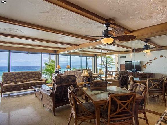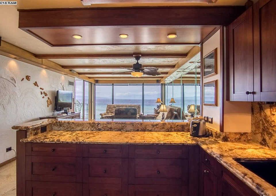 Gorgeous direct oceanfront location 1-bedroom 1-bath that has been supremely maintained and highly upgraded. Mahana 407 offers a perfect location for whale watch and year-round sunsets from the 4th floor, with unobstructed views and privacy. Unit is rated a "Premium" in the on-site Aston Resort Quest rental program. Finishes include granite counters, hard wood cabinetry, and tile throughout and artistic wall murals and stained-glass sliding doors. Mahana offers a quiet resort getaway yet close to shopping, activities and restaurants including Dukes Beach House next door. Amenities include a spacious beachfront swimming pool, sauna, shuffle board, grilling facilities, and tennis court.