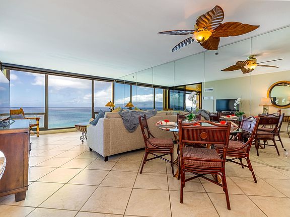 Located on the 8th floor of the Molokai Tower offering amazing ocean views and the neighbor islands of Lana'i and Moloka'i. A prime spot to watch year-round sunsets, humpback whales in winter and most days, the sea turtles in the surf below. If you are lucky the occasional monk seal will swim to shore and rest on the beach right in front. Hotel zoned per County records. This 8th floor spacious one bedroom condominium features floor-to-ceiling windows with ocean views from your private lanai, kitchen, living room and bedroom. The tile flooring throughout and wall of mirrors in the living room gives this an extra feeling of a beautiful open tranquil space. The sliding glass doors open and close easily and the electric shade in the living room is a real plus. Wood cabinets, granite counter tops and stainless-steel appliances in the kitchen are all updated as well as the tiled walk-in shower. A brand new couch and tasteful furnishings in the bedroom complete this well appointed unit. The Mahana at Kaanapali offers a quiet beachfront resort atmosphere under the shade of the Monkey Pod trees. Amenities include a beachfront swimming pool with spa, shuffleboard, lighted tennis court, poolside grilling facilities and access to the Kaanapali boardwalk, restaurants and beach activities. Monthly Maintenance includes electric, A/C, gas, water, sewer, elevator service, trash, recycling, cable TV, internet, storm, flood and general liability insurance, and a monthly contribution to the Capitol Reserves Fund for major components of the building. Unit 807 is in the on-site Aqua Aston rental management program and can be shown on appointment when vacant. Unit is being sold fully furnished excluding some artwork.