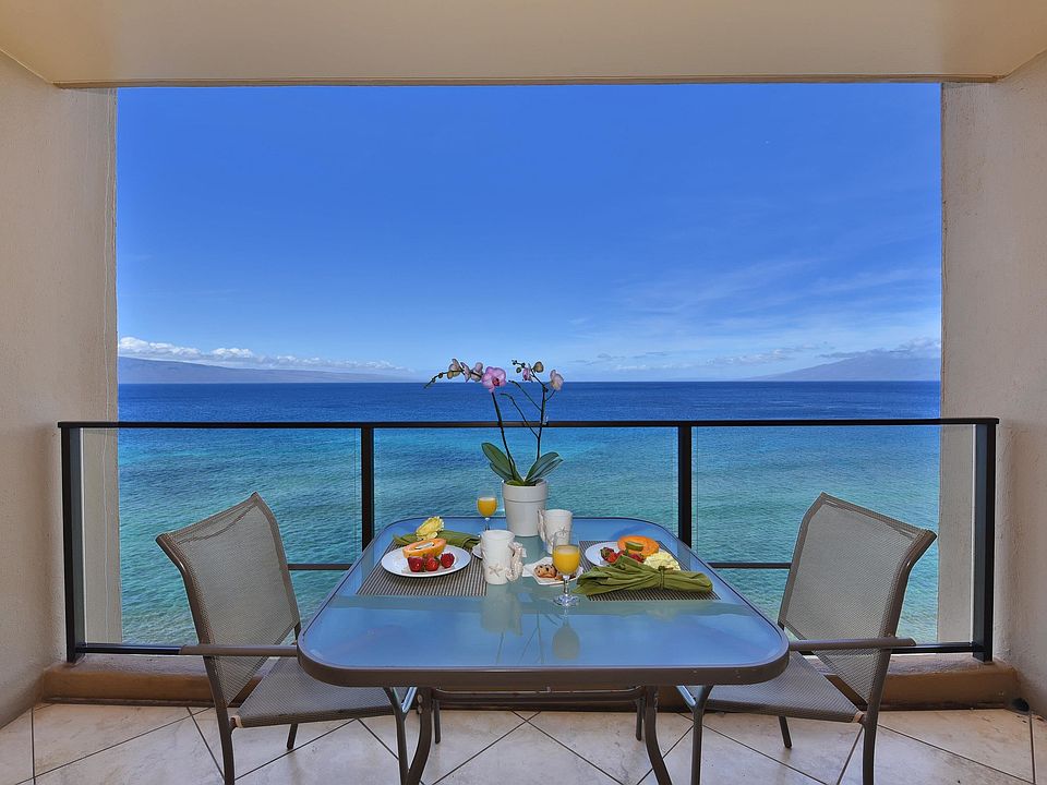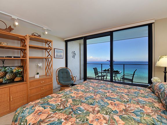 Experience the beauty of Maui from this private 9th-floor studio condo, Mahana 913, offering breathtaking oceanfront views. Facing west, it boasts stunning sunsets, whales breaching seasonally, and picturesque views of Lanai and the majestic island of Molokai. Relax on your lanai as you listen to the gentle surf, watch sea turtles and dolphins play in the waves, and feel the soothing trade winds. Situated on the pristine N. Kaanapali Beach, a three-mile stretch of sandy shore, you'll enjoy great swimming, kayaking, surfing, and snorkeling. After a day of adventure, unwind on your private lanai with a spectacular sunset. Guests are welcomed with a charming Hawaiian-style lobby, making every visit special from the moment they arrive. The design features include custom kitchen and bathroom wood cabinets, recessed lighting, granite countertops, walk-in glass-door shower, washer-dryer, tile flooring throughout and central air conditioning. Amenities at the Mahana resort include a private access gate to the Kaanapali beach boardwalk, an oceanfront swimming pool and spa, shuffleboard, pickleball/tennis courts, and two BBQ areas. This beautifully furnished condominium is fully equipped and ready to short term vacation rent at a premium ... or have as your own friends and family island getaway. Short-term rentals are permitted, and 913 uses onsite vacation rental management through Aston. Aston managed units are in a rental pool, so the unit collects income whether it is occupied or not. This is a Hotel Zoned property per County Records. Mahana is located within minutes to Duke's restaurant, grocery stores, shopping and food trucks.