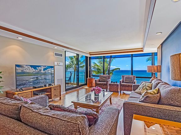As you step into Mahana #311, a Kaanapali Maui Hotel Zoned Vacation Rental, you’ll be greeted by an elegant, warm living space that maximizes breathtaking ocean views. Seller will strongly consider Seller Financing with $800K down and 3-5-year term with below conventional financing rates. This corner residence features an extra window in the living area that non-end residences don't have thus giving it an even more expansive view of the ocean, coastline, and complex courtyard and pool. Floor-to-ceiling windows invite the warm Hawaiian sun and the magical Pacific Ocean into your home, creating a seamless connection between indoor and outdoor living. This residence has undergone a tasteful, elegant, and timeless remodel.