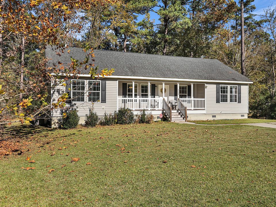 Welcome to 110 Kay Street, a 3-bed, 2-bath 2016 modular home offering modern comfort and small-town charm. Sitting on nearly half an acre, this property features a welcoming front porch perfect for relaxing and enjoying quiet Lowcountry evenings. Inside, you'll find a spacious open layout, a large primary suite with dual vanities, separate tub and shower, and two oversized guest bedrooms -- each with its own walk-in closet. The home also includes a seperate laundry area and plenty of storage throughout. Enjoy easy access to nearby conveniences including the Walmart Neighborhood Market, local schools, Carter's Truck Stop, and downtown Ridgeville. Makes a great primary residence or investment property! Come take a look today. Washer, dryer and microwave do not convey.