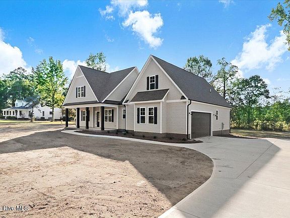 New Construction on 1.14 Acres in well established neighborhood with NO HOA! This stunning farmhouse plan offers 3 bedrooms, 2 baths, a spacious upstairs bonus room, and formal dining. Enjoy an open and airy living space with cathedral ceilings and a beautifully appointed kitchen featuring upgraded cabinetry, quartz countertops, sleek stainless steel appliances and large walk-in pantry. The primary suite is a retreat of its own with a large walk-in closet and luxurious ensuite bath complete with a large tiled shower and dual vanities. Additional upgrades include LVP flooring throughout the downstairs, a floored attic for added storage, and screened in back porch. The large 1.14 acre lot features a natural and mature tree line that offers a beautiful scenic view. Ideally located just minutes from Hwy 70, Hwy 581, I-795, shopping, dining, and SJAFB!