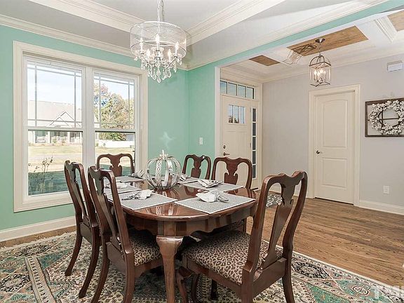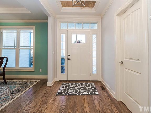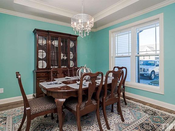 AMAZING WATERFRONT LOT! 3BR and 2.5BA home has gleaming hardwoods thru-out the downstairs main living areas, formal DR w/trey ceiling, spacious kitchen w/granite countertops, subway tile backsplash & stainless steel appliances, bright breakfast rm, open family rm w/coffered ceiling & stacked stone gas log fireplace, downstairs MBR w/garden tub. Upstairs is complete w/BRs, home office, bonus rm & storage. Enjoy afternoons on the screened porch or patio overlooking large pond. Convenient to Raleigh!