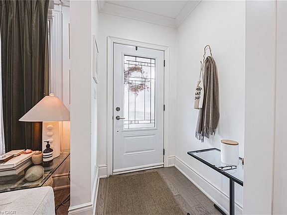 Inviting front porchBright open-concept livingEngineered hardwood flooringFresh paintCrown mouldingElegant trimSophisticated coffered ceiling