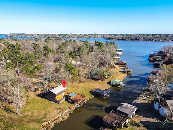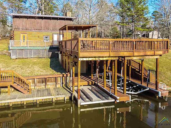 Cozy Waterfront Cabin on Lake Cypress Springs in gated King's Country subdivision. 3 bed, 2 bath rustic log cabin featuring new boat house, 140 feet of water frontage, .8 acre lot, open family room, wood floors, vaulted ceiling, stone fireplace, mature trees, and more! New 2-stall boathouse with large deck and mosquito misting system built in 2018, all new HVAC in 2019, new fridge in 2019 as well. Please note this property is fee simple, NOT Leaseback. King's Country has over 20 miles of paved private roads, excellent for your golf cart adventures! Sudden Link high-speed cable internet & television now available in King's Country! Great weekend getaway! Come see!