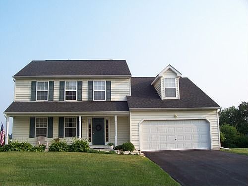 Fantastic views from 1 acre lot on private hilltop cul-de-sac Upgraded eat-in kitchen with island, convection oven, new flattop stove, upgraded appliances Large upgraded 20x20 deck overlooking scenic views, perfect for entertaining Extra large family/living room with gas fireplace. Open floor plan looking into kitchen Formal dining room by kitchen Library, Office or extra room Hardwood floors New neutral paint Master bath with double sink vanity and jacuzzi tub 2 car attached garage and storage shed Full walkout basement, ready to be finished 4 large bedrooms, with separated Master Suite 2 full and 1 half baths Walk-in closets Low Taxes!! House is sparkling clean and well maintained Moving due to job relocation ...many more features...come see for yourself HOME WARRANTY INCLUDED