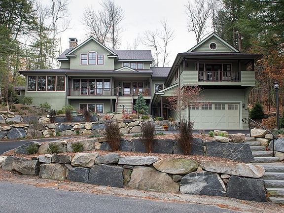 Built in 2013 with the highest attention to qualityl - this stunning 4,900 sq.ft. home overlooks the broad waters of Sunapee Harbor. Enjoy a lakefront lifestyle with your own private dock, complete with boat whips, just steps from this 3 bedrm, 3 bath home. This lovely home takes advantage of water views from all principal rooms. Awaken to lapping waters and serene mountain setting. Walk the popular 3.6 mile Burkehaven Loop- which starts at your doorstep. Enjoy popular lunch spots in the cafes of Sunapee Harbor - just 5 minutes away. Relax all afternoon in the tranquility of the back yard gazebo with private babbling brook. Never miss a fantastic sunset from the many decks, verandas, 2 glass enclosed 4 season porches or down at the dock. An inspiring blend of artistic design with complete energy efficiency and the most modern of building techniques. Boat whips installed on Dock. Special Dog Shower located in Laundry Room. Private walkway to private dock.