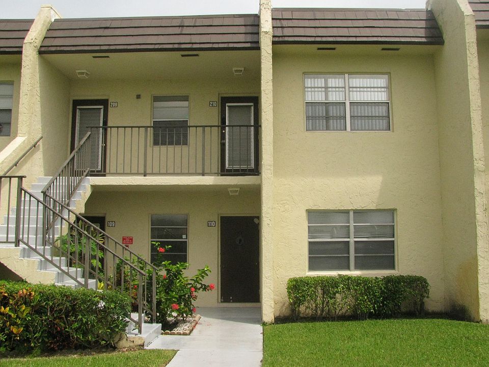 Very pretty view on canal, private and quiet. 2 bedroom convertible,2nd bedroom has accordion partition to close, 2 full bathrooms, screened patio with storage closet. Large walk in closet in Master Bedroom. 1 pet allowed under 30 pounds. Very active clubhouse with year round events if you choose to participate. Association fee includes basic cable, amenities, heated pool, clubhouse, tennis, pool tables, social room,computer room, workout gym, 2 heated community pools plus Jacuzzi, community bus, cafe, guarded security gate. 1 assigned parking space and plenty of guest spaces to offer. Very close to Florida's Turnpike, I-95, entertainment, shopping, and dining.All measurements are approximate. Sold 'as is' with right to inspect.