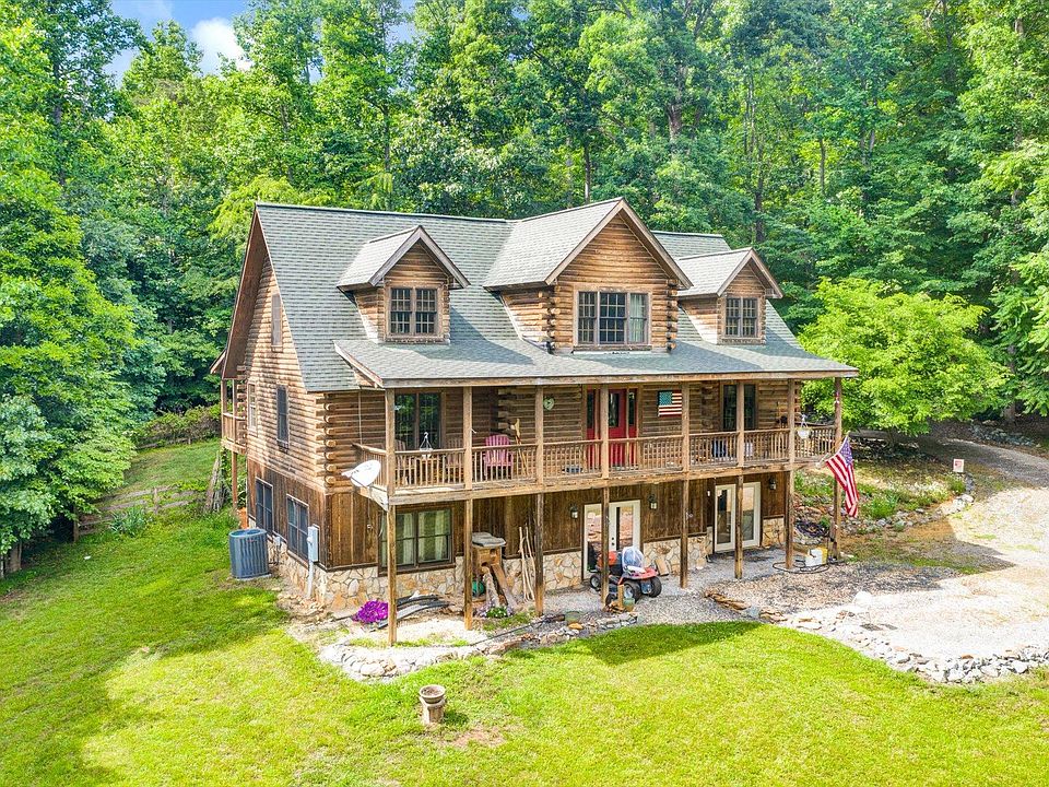 This custom built contemporary Smith Mountain Lake Access log home is perfectly situated 6.72 acres in a Park-Like setting in beautiful Admiral Landing. The E/Level features a Master Suite w/walnut floors that lead out to the deck, spacious kitchen w/SS appliances, eat-in kitchen, dining area w/ash wood floors, guest BA, gorgeous living room w/cathedral ceiling, FP, wall of windows, & laundry room. The U/Level includes a master suite, 2 guest BR, & guest BA. Finish the lower level for additional living space & a large workshop. Enjoy the tranquility this 6.72 acres has to offer including abundance of wild life & privacy. Fenced back yard & fire pit. Minutes to the amenities: boat launch, day docks, gated boat storage. Convenient to Rke, & Rocky Mt.