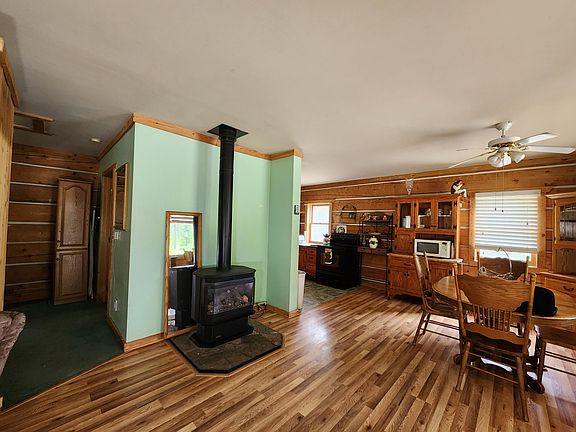 This handcrafted log cabin is a perfect getaway. Surrounded by acres of rolling hills and trees, it's the perfect escape for nature lovers. With 31.68 acres of pristine woods at your fingertips, you can hike or ride your horses on the property. The cabin also includes a full kitchen, living room with propane burning stove. It's even equipped with a washer for those times when you just want to relax without having to haul your own clothes around! The shop/garage is fully insulated with wood stove heat and features carports on two sides, one is currently set up a a dog kennel. Finally, make sure to check out Republic WA's small town atmosphere.