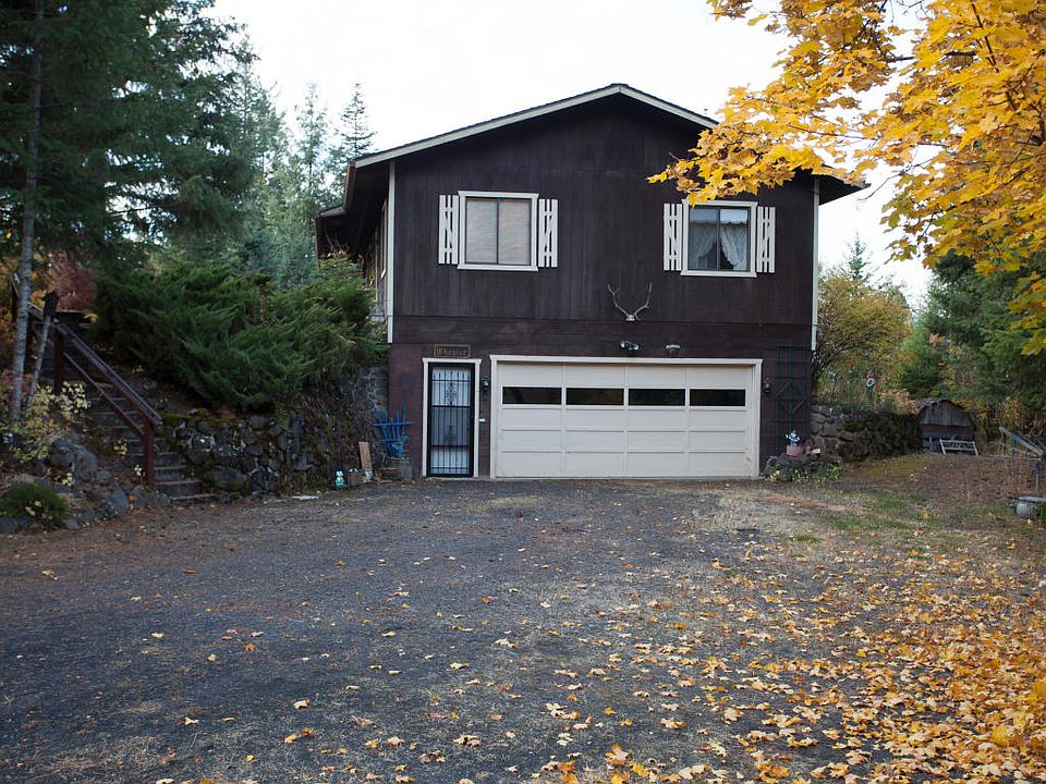 Location! Location! Location! Private location with a view. Home has 2 bedrooms on main floor with efficiency apartment in walk-out basement. Master bedroom with private bathroom. Laundry on main floor. Extra lot on west side of house, makes room for shop. Two car inset garage.