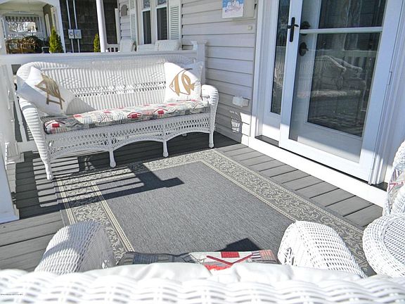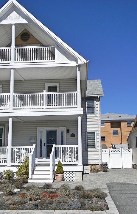 Enjoy spectacular ocean views from the front porch and balconies of the EAST Side Unit of this beach block duplex . Inside you'll find 4 bedrooms, 2 full and 1 half baths, hardwood floors, laundry, Andersen windows, recessed lighting, ceiling fans and more! The newer kitchen shines with stainless appliances. Outside is a paver driveway and back yard, outdoor enclosed shower, an outbuilding doubles as storage in the winter and an outdoor bar in the summer. The back yard is surrounded by a vinyl fence allowing for privacy. This home is equipped with solar panels, a security system with cameras and is a Honeywell smart house. Walk to the beach, restaurants and transportation. This home has been lovingly cared for and it shows! Please note this is the eastside unit that is for sale.