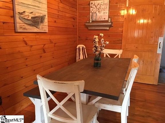 Lake living, close to Simpsonville and Laurens in the sought after Hickory Tavern Community. Property has approx. 3.78 acres and is waterfront on a beautiful lake which is about 154 acres in size. The lake is known as Boyd's Mill Pond. Once you turn down this properties driveway you will soon be greeted by the beauty of the lake frontage, which by the county records is over 1100 feet. The circular driveway has ample parking for you and your friends or family. Some of the many features of this beautiful log home are: two car garage, huge rocking chair front porch (which is where I would be most of the time, if not out on the lake), architectural shingles, recently added deck. Inside this home you will find gleaming hardwood floors, cathedral ceiling, stone facade wood burning fireplace, open floor plan, updated kitchen cabinets with gorgeous granite tops, black stainless appliances, updated lighting fixtures, split bedroom plan, two of the bedrooms have a beautiful lake views as does the living, dining areas, and breakfast bar, the master bath features a huge walk-in shower, laundry room is large and the exterior door from the laundry room opens on to a large deck located on the side of the home. This home lives way larger than the size of its square footage, due to the open floor plan and cathedral ceiling. Lets not forget boating, kayaking and fishing on the lake/biggest pond that I have ever seen. Some of the fish that you can catch out of the lake are: Bass, Brim and Catfish. On cool days sit out by the fire pit and get toasty, and maybe roast marsh mellows or s'mores. Come call lake life home at this almost one of a kind property. Spend your Lazy Days at 110 Lazy Days Walk and be on feel vacation 365 days per year.