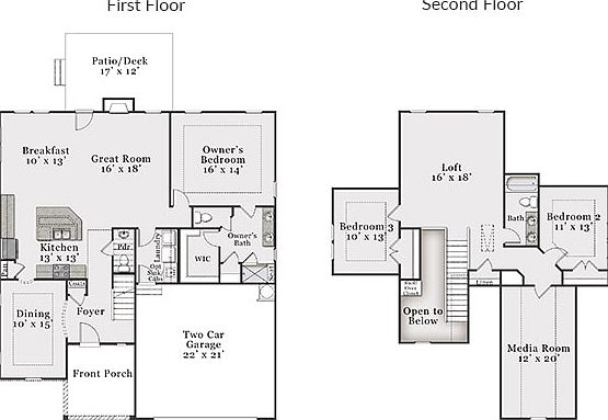 McKee Homes presents the Biltmore 2020 European with a charming front entrance opening to a soaring two-story foyer, elegant formal dining room and inviting great room. The thoughtfully designed kitchen layout includes a large chef's island with plenty of room for seating adjacent to the sunny breakfast area. The owner's suite is conveniently located on the first level with huge walk-in closet, dual-sink vanity, shower with seat, and linen closet. The laundry room, which serves as a mudroom off the garage, and the powder room finish off the first-floor interior space. Moving to the second floor, you will find two additional bedrooms and ample versatile flex space from the spacious loft to the substantial media room. These large open rooms have many uses such as office, family room, playroom, movie room, or whatever fits your needs. The Biltmore 2020 European elevation features custom exterior details that give these homes a refined upscale look. The blend of architectural stone, siding, and specially styled arches and roof lines give our European Collection homes a unique and appealing design. The Biltmore 2020 is teeming with options to include a sunroom with plenty of light off the great room and a well-lit sitting room and deluxe owner's bath in the owner's suite. The formal dining room with a French door option that turns it into a study just off the foyer and the deluxe kitchen layout finish out the first-floor options. If you need an additional bedroom, a