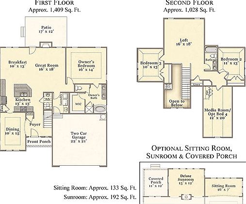 McKee Homes presents the Biltmore II Craftsman elevation with a charming front entrance opening to a soaring two-story foyer, elegant dining room, inviting family room, and a newly redesigned kitchen layout that includes a larger island and breakfast area. The master suite is also larger in the Biltmore II, offers a spacious walk in closet, an optional bay window and is conveniently located on the main level. Moving to the second floor you will find three additional bedrooms and a versatile loft. This large open room can be used as an office, play room, media room, or whatever fits your needs. The Craftsman Collection floor plans include all the great features of our Classic floor plans with custom exterior details that give these homes distinctive elegance and refinement. A blend of stone, siding and specially styled roof lines and supports give our Craftsman Collection a custom upscale look.