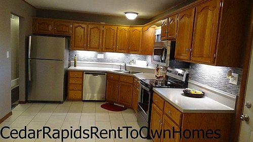 110 LEROY ST SWREDUCED RENT! Now just $1395Plus, super low utilities! Save CALL to make this gorgeous RENT TO OWN yours TODAY!110 Leroy St SW Cedar Rapids, IowaCheck out the "WOW"View pix and details at:www.CedarRapidsRentToOwnHomes.comTop Notch Upgrades Special Features:Updated throughout 3 bedrooms & 2 1/2 bathsGorgeous kitchen with Stainless Steel energy efficient appliancesUnder cabinet lighting and tiled back splashCeramic tiled kitchen floorOpen concept living with formal dining roomLarge windows provide natural daylightSatin nickel hardware and lightingMaster suite with full bathProfessionally painted in shades of gray with a splash of pewterHuge finished lower level with MAN CAVE & Kid caveScreened porch overlooking ¼ acre plus yardNo backdoor neighbors, just a nice open areaLots of storage inside and outside in storage shed This spacious open concept living split foyer is ready for a very lucky family. Meander through this low traffic neighborhood and you will find yourself right at home. Step into the spacious 2 story foyer. And admire the beautiful satin nickel lighting. Enjoy the impressive kitchen with soak cabinetry, crown moldings, satin nickel faucet and stainless steel sink. The Corian counter top compliments the back splash of gray ceramic glass. Under cabinet lighting makes this kitchen a delight. A full complement of stainless steel energy efficient appliances are included (refrigerator, smooth top stove, microwave and dishwasher). Gorgeous ceramic tile flooring throughout the eat in kitchen, and formal dining room. The open living room boasts of multiple windows for natural daylight. Throughout you will find new carpeting, ceramic and vinyl flooring, refinished doors and woodwork, satin nickel lighting, ceiling fans and hardware. Professionally painted in trendy shades of contemporary grays. The bedroom wing offers 3 bedrooms all with large closets.Master suite has plenty of space for all of your furniture. Slip into your private master bath. Main bath has a freshly tiled shower with coordinating granite counter top and clothes shoot. Step into the lower level and you will find a HUGE MAN CAVE with plenty of space for the entire family. Also, a spacious guest bath. Washer and dryer are included in the utility room. Attached 2 stall garage with extra storage means you can keep everything organized. Off the kitchen you will find an updated screened porch to relax on as you watch the kids/pets play in the over ¼ acre yard. Lots of colorful easy care perennials. And no BACK DOOR neighbors, just a large open area. This family neighborhood is filled with friendly homeowners, with lots of kids of all ages. This home is maintenance free and energy efficient. You will love the low utilities! If you like to shop and/or eat out, Westdale, strip malls and several restaurants are nearby. Details: Total Finished Square Footage: 1807 (approx)Taxes: $3140 (approx) Built: 1965 This remarkable home is available "rent to own" at just $1395 per month, plus option fee, which is 100% applied to the purchase, if purchased within 12 months. Rent credits apply. Ask how you can have an additional $1200 applied to the purchase. OR can be purchased on contract (seller financing) OR finance at your favorite lender. Call or text 319-350-4072 for more details. EZ QUALIFY. UGLY CREDIT OK. This can be YOUR NEW HOME for only $175,000.00For a personal tour, please call or text: 319-350-4072. If this lovely home is not "just what you are looking for", please call to find out about additional custom homes available in the Cedar Rapids/Marion area or visit www.CedarRapidsRentToOwnHomes.com.