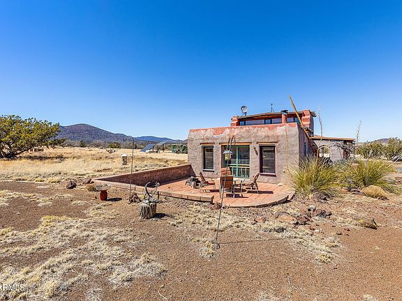''Welcome to Moonpie where you will discover the beauty and joy of sustainable living amongst the juniper trees and pinion pines of Northern Arizona! This charming traditional Adobe brick home sits at the heart of 40 acres of pristine land. The main house has gorgeous rustic charm with loft, wood burning fireplace & stove, authentic Saltillo tile throughout. Fully functional kitchen, new dual pane windows, and corrugated metal roof over scenic wrap-around porch. Gorgeous south facing French doors looking out to your oversized 2nd porch made of pavers. The two feet thick walls made with adobe brick sustain constant inside temps throughout the year. Elevation decreases as you enter the area with desirable lower temperature. Nestled in a volcanic chain overlooking the Painted Desert, Roden Crater & Moon Crater where you can embrace the serene surroundings with stunning views of San Francisco Peaks with direct access to the adjacent National Forest. A separate cabin and bathhouse is equipped with gas heat and a cozy pellet stove for year-round comfort. Cabin has its own private fenced yard - perfect for guests or caretaker. Enjoy off-grid living powered by solar energy, while a comprehensive water catchment and filtration system ensures self-sufficiency from pump house to faucet. Complete with chicken coop, shed, and ample space for gardening, composting or your own personal additions. This special property offers the ultimate retreat for those seeking a harmonious blend of nature and sustainability and is only about 20 miles from town. You will not want to miss the opportunity to own your own serenity retreat in Flagstaff, AZ.