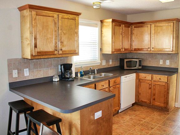 - Kitchen: Bar, Counter Tops-Formica, Eat In, Pantry, Cabinets-Natural, Floors-Vinyl
