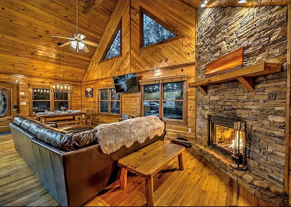 Turn key, high cash flow cabin for sale or trade! Walk into $20,000+ of instant equity, priced under appraised value. Seller offering up to $15,000 CASH in closing costs plus 1% off your fixed rate with Nexa Mortgage!*Have a home to sell? Buy this home, and we'll buy yours! For more information, call/ text directly.* Fully furnished with high end furniture, and currently cash flowing cabin in Mineral Bluff. Cathedral pine ceilings, oak flooring, wood burning fireplace, open concept kitchen/ dining/ living room, and 2 Master Suites make this home extra cozy. Each master has large closets & bathrooms, and double doors to walkout to decks. The unfinished basement is plumbed for a bathroom and has endless potential. Loft area is used as a 3rd bedroom with queen/ twin bunk beds. Enjoy sitting on the back porch bed swing or in the hot tub, looking over the backyard surrounded by beautiful hardwoods, and listen to the bubbling creek. The perfect mountain getaway, or investment property. Contact directly for more info or to schedule a private tour.