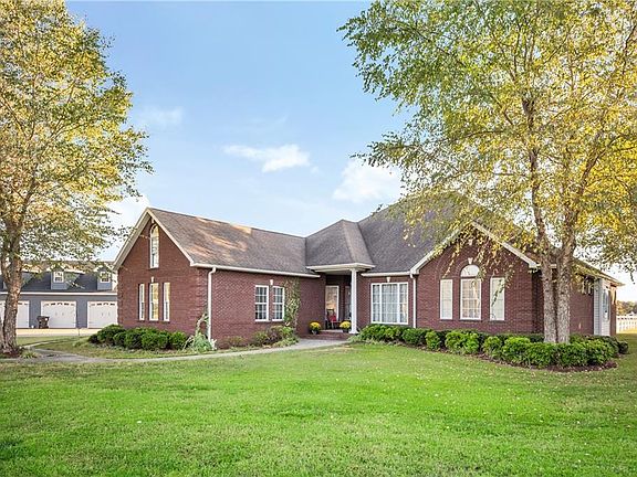 Beautiful full brick with bullnose brick, one level home with 10 ft ceiling through out and 5 car garage on 1.27 acres of land just a few miles off of interstate 85 and convenient to Greenville and Anderson. You will love this home with beautiful Oak floors, large rooms, 2 gas fire places, Large kitchen with plenty of solid oak cabinets, Island with jen-air cooktop, built in oven, large porcelain sink, breakfast area and warming room. Large living room with stone fireplace that is open to dining room and and large concrete back patio. Right off the living area you will find an oversized maser suite with large walk-in closet and master bath with walk - shower and large tub and separate his and her vanity's. Two other bedrooms with a large jack and jill bath room and large private office. If you are looking for an extra room there is a large bonus room and half bath. This home also has large a large 24x20 attached garage with painted floor and large window and well as 30x40 detached garage with walk up stairs and floored attic. This home is a must see and would make a wonderful family home with plenty of room inside and out.