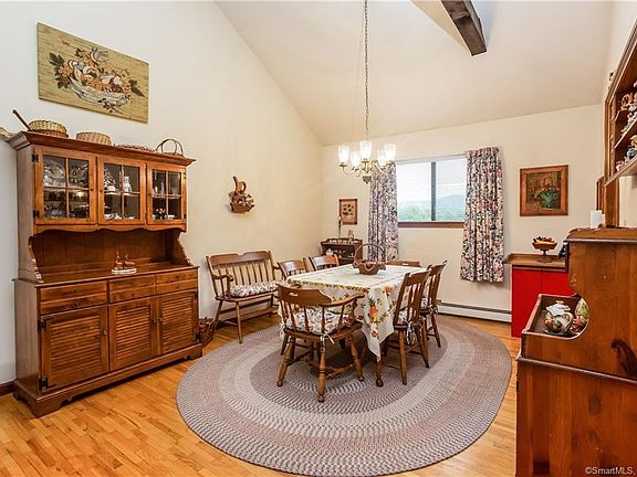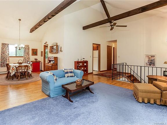 Lovingly cared for Raised Ranch set back from the road on a corner lot. Beautiful and spacious Living room and dining room with cathedral ceiling and exposed beams and in wall AC unit. Eat in Kitchen with access to inviting 16x8 rear deck. Generous sized bedrooms, Master bedroom with full bath. Hardwood floors on main level. Fabulous family room with fireplace and woodstove insert, half bath, and laundry room with utility sink complete the lower level for an additional 782 sqft of heated living space. New furnace in 2010. A 2 car garage with auto door openers. Exterior features a 12 x 8 shed, stonewalls, level and gentle sloping yard. Minutes to New Milford Green and shopping. Don't wait, come see this home now!