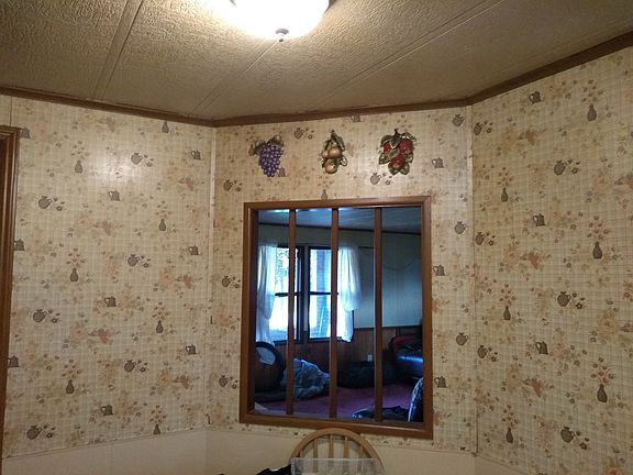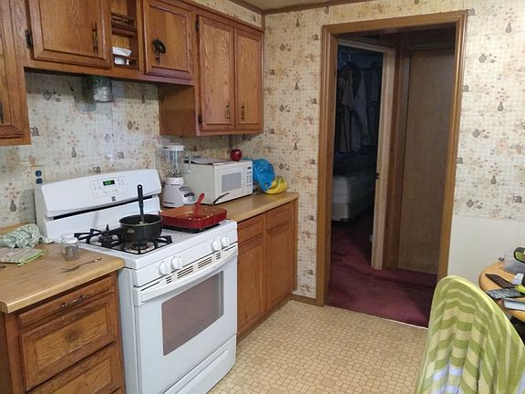 3 bedrooms,1 and half bathrooms, kitchen, dining room, living room and laundry room. covered front and side porches . Sliding doors go out to a flat double lot back yard ! Needs a little work but in move in condition .. Was in the process of updating while living in the house. Roof is 5 years old . 50 gallon hot water tank is 1 years old . Most windows are new replacement windows . Fresh paint in most rooms . Layed new floor in kitchen , dining room and Hall way . House can NOT be moved . It is anchored down onto a foundation .